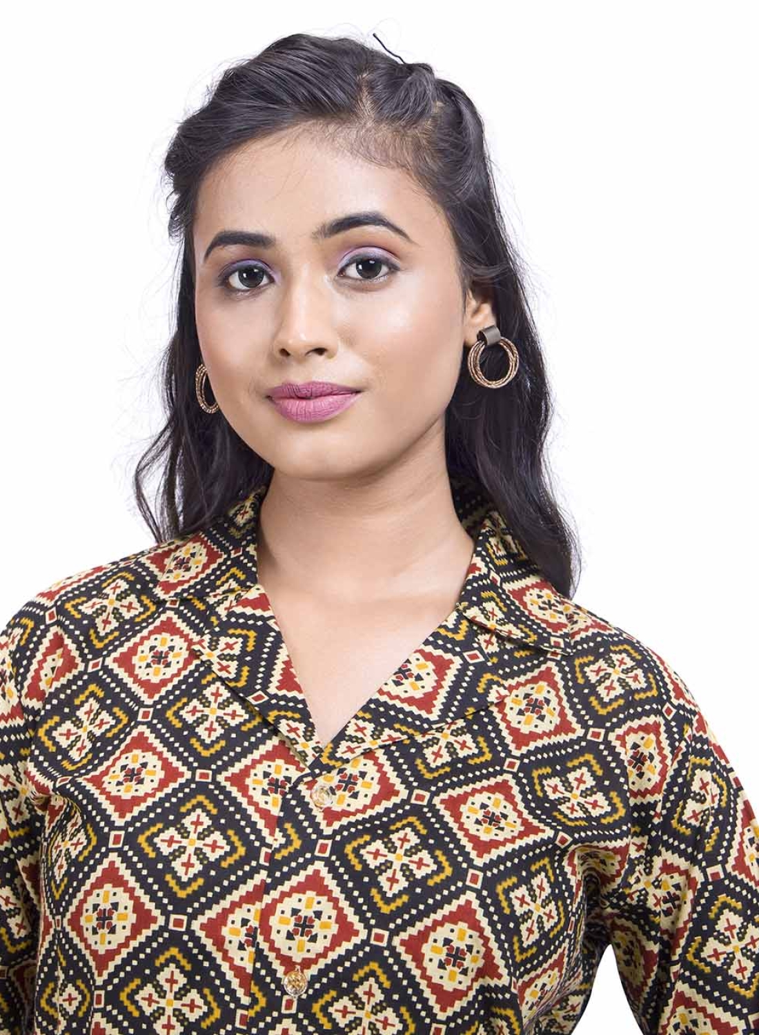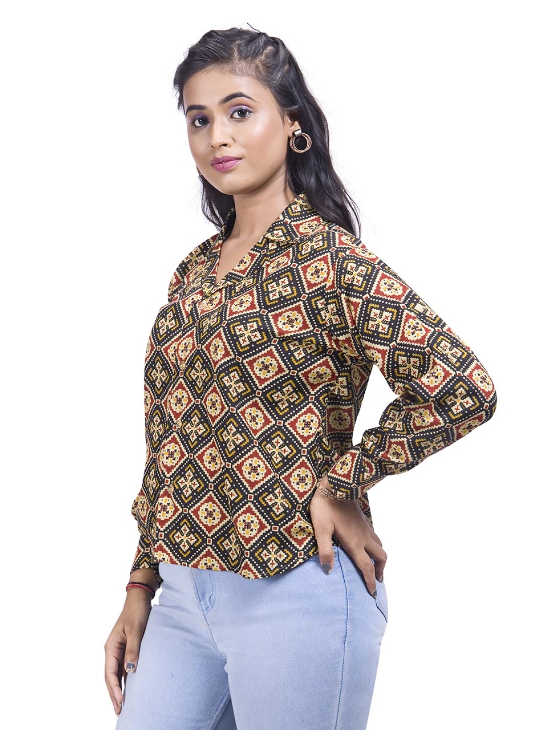 Desi India Women's Traditional Geometric Print Collared Shirt, Long Sleeve, Cotton Blend, Multicolour