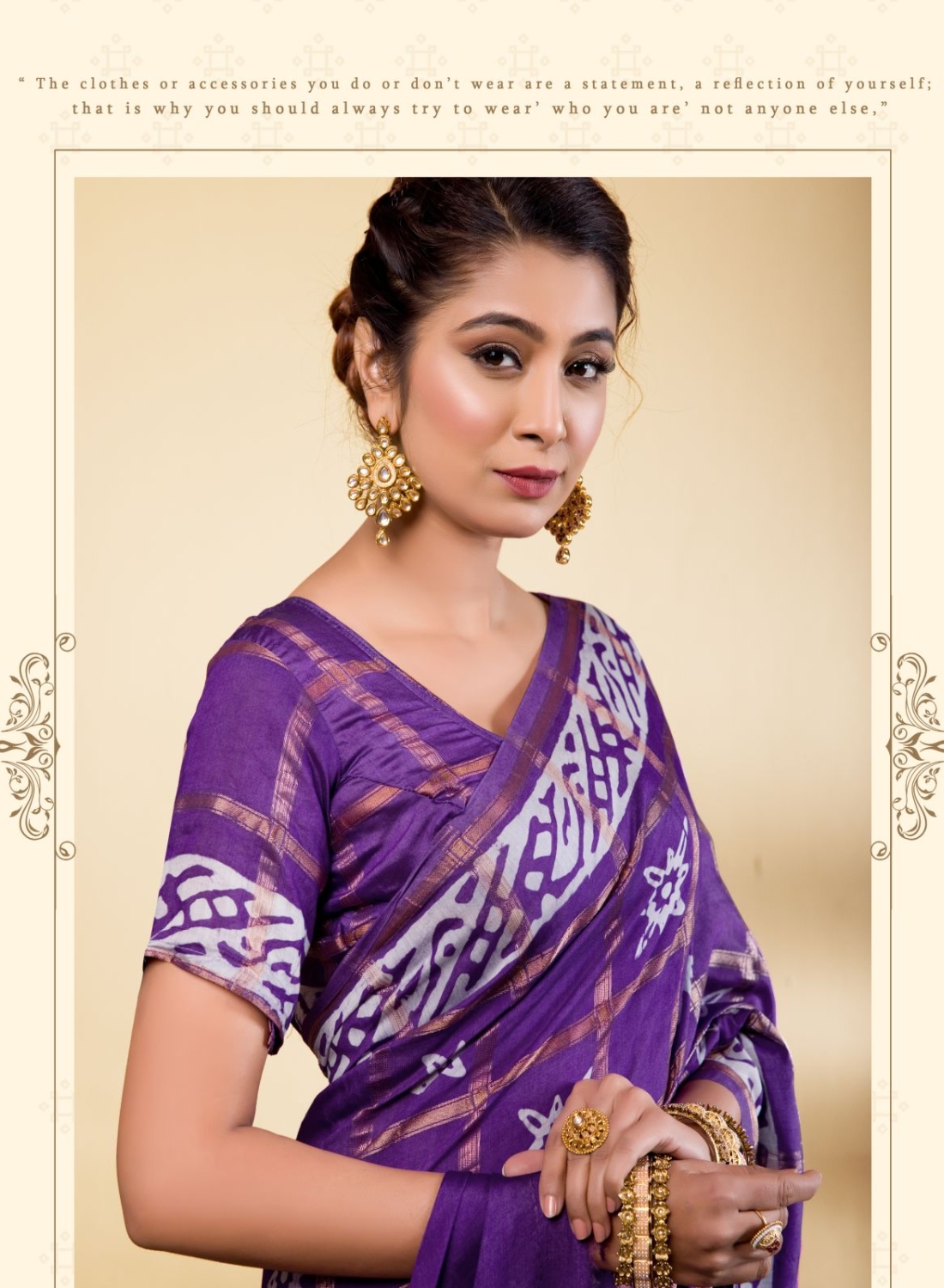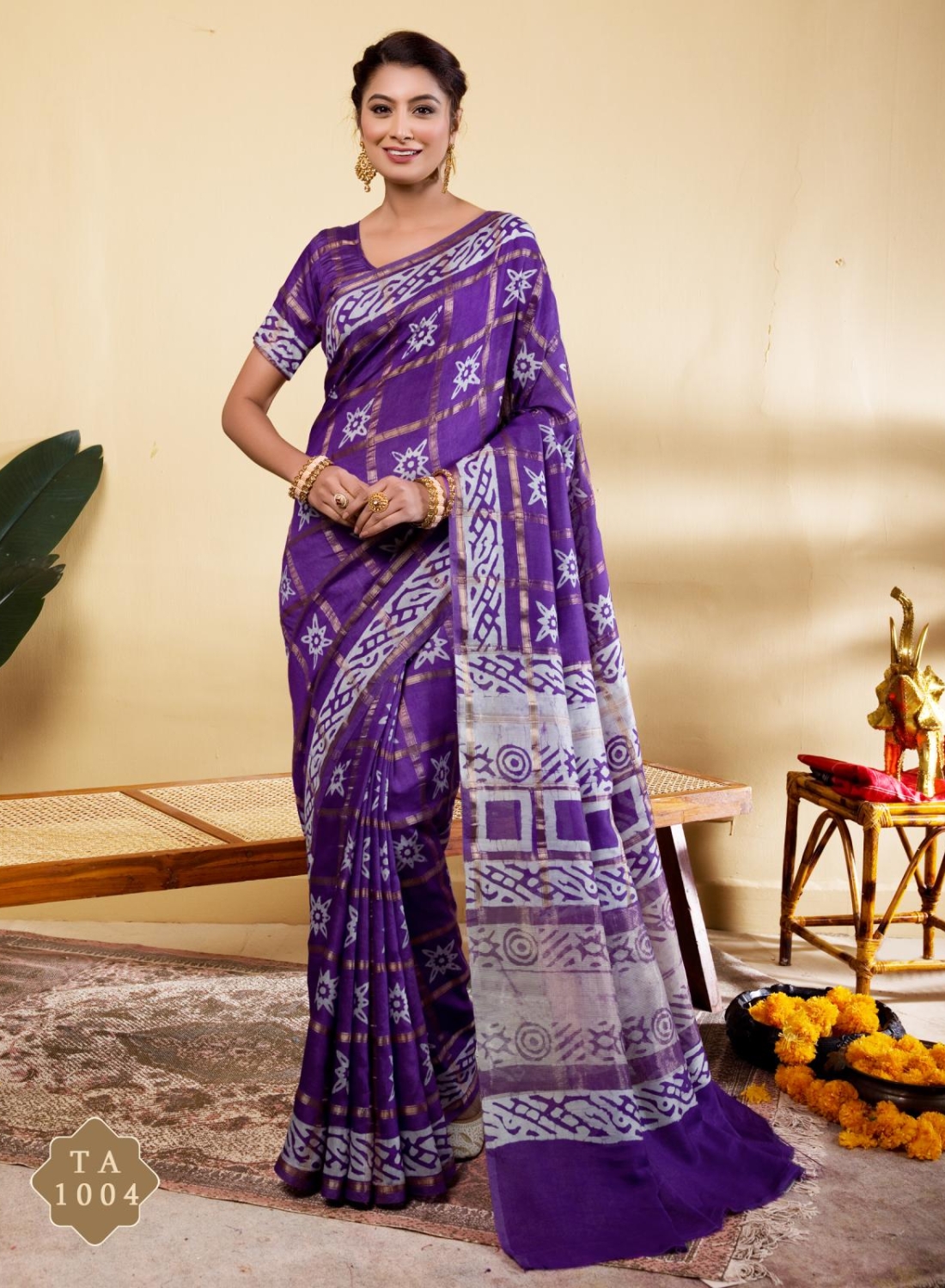Exquisite Royal Purple Soft Viscose Saree with Geometric Batik Prints