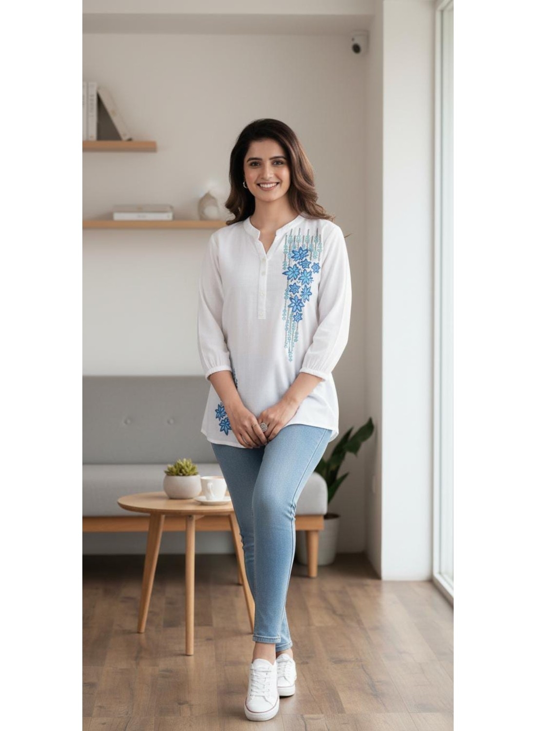 Elevate your everyday style with this elegant White Rayon Embroidered Tunic. Crafted from premium, breathable rayon fabric, this top offers a silky-smooth feel and a graceful drape that keeps you comfortable from morning to evening.