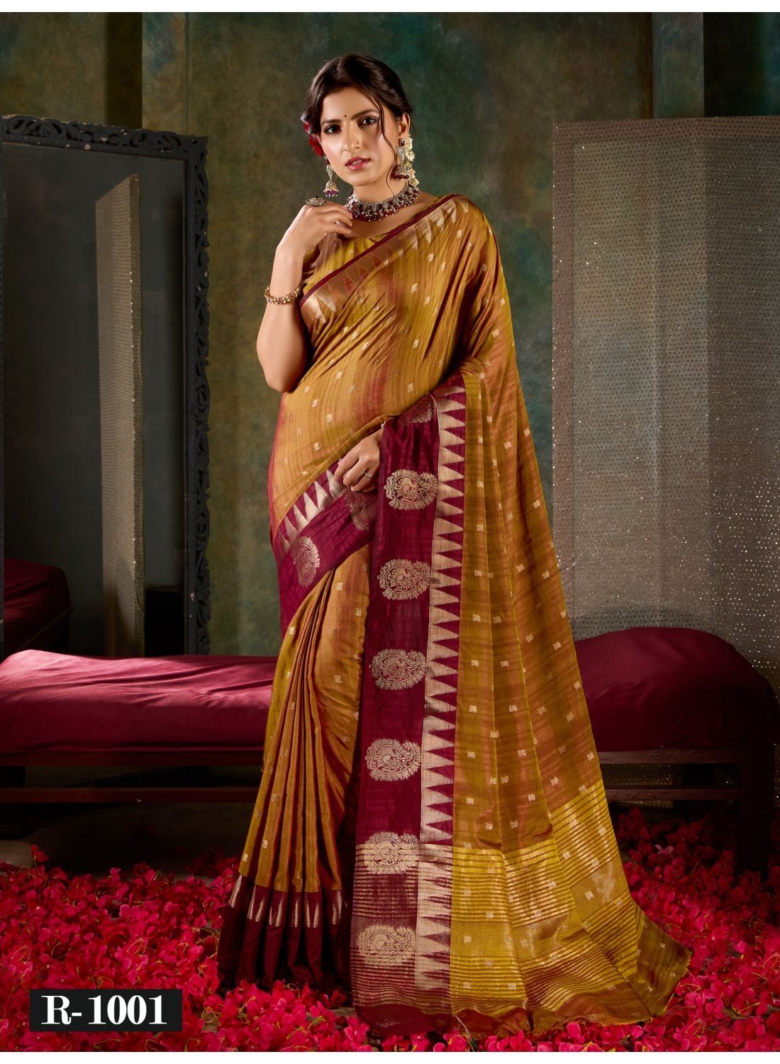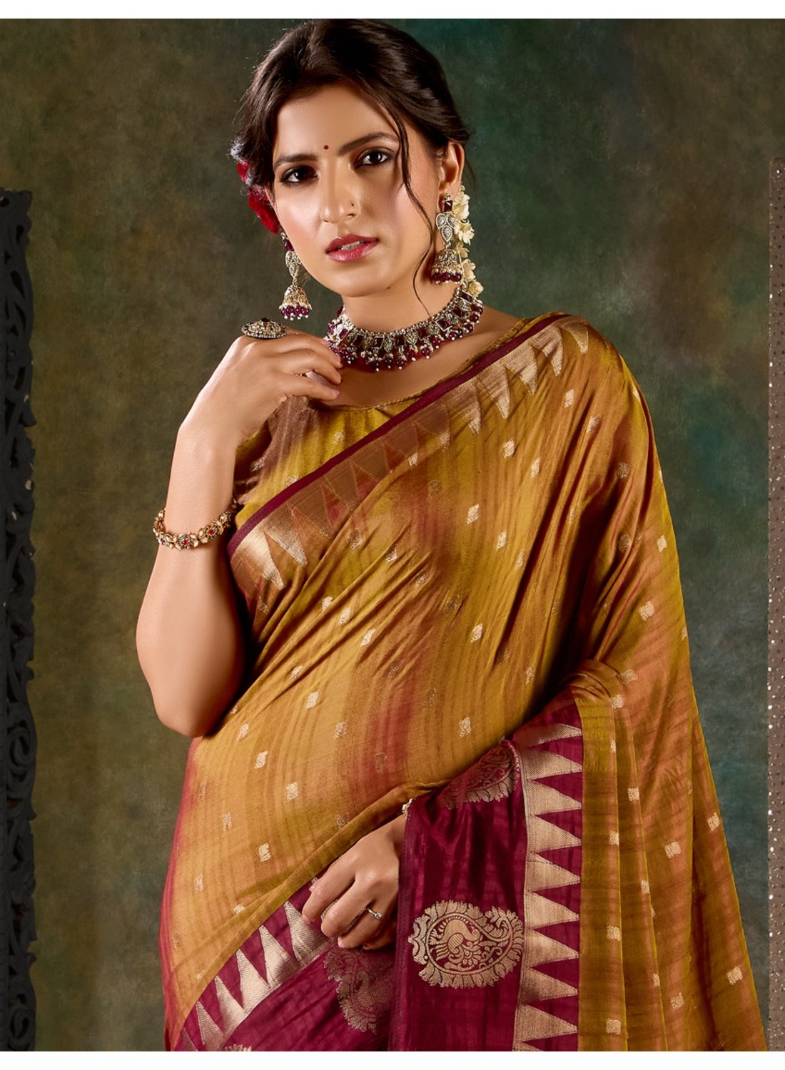 Gold & Maroon Banarasi Silk Saree with Traditional Zari Borders