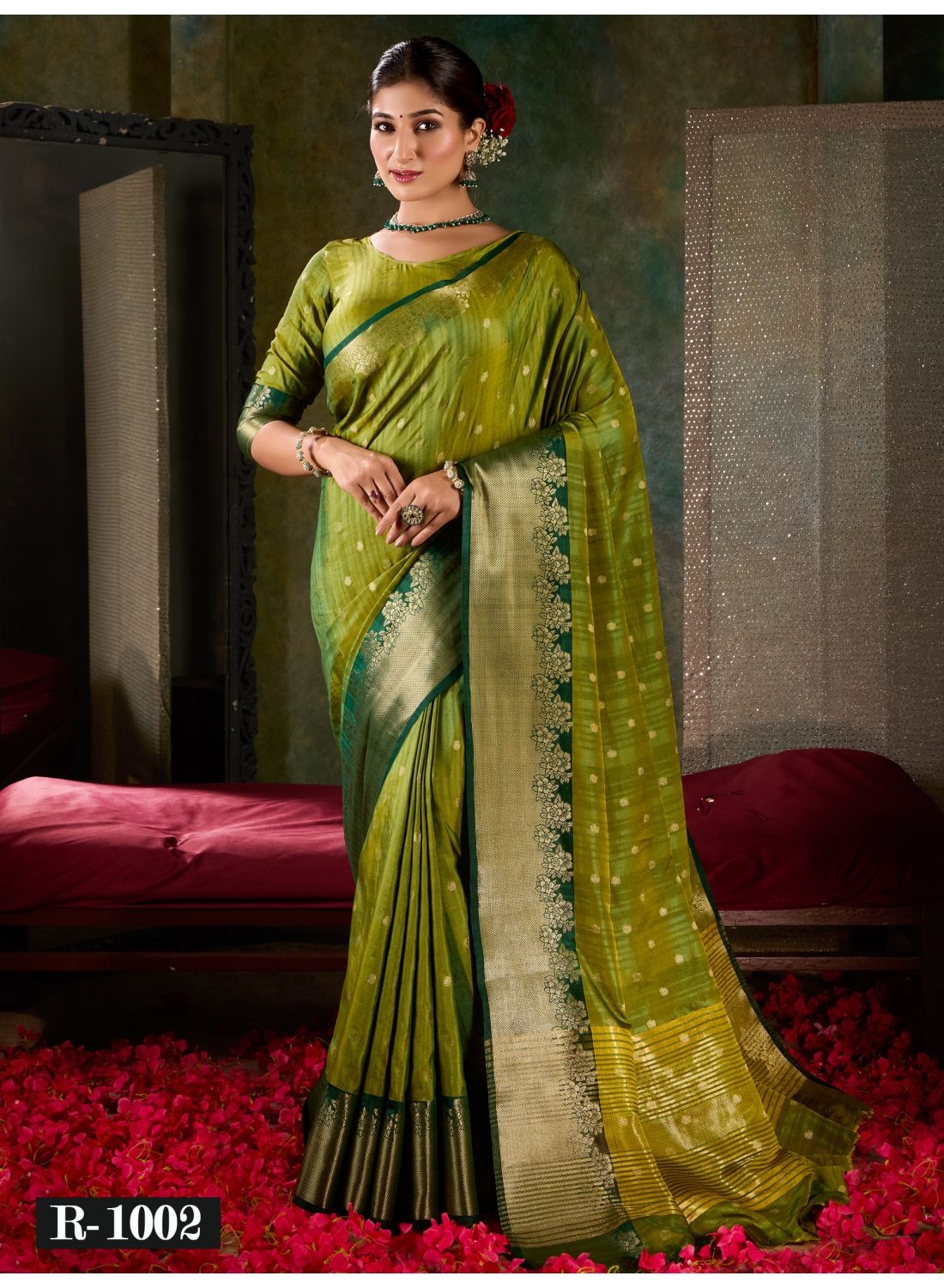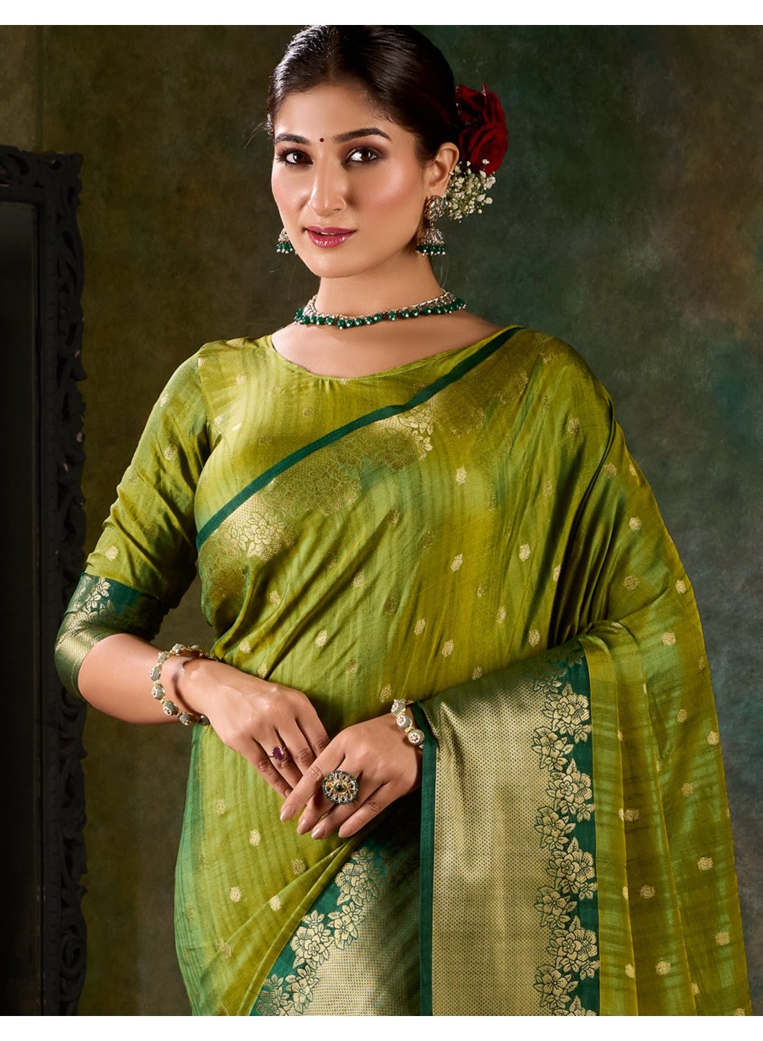 Olive Green Banarasi Silk Saree with Emerald Zari Border