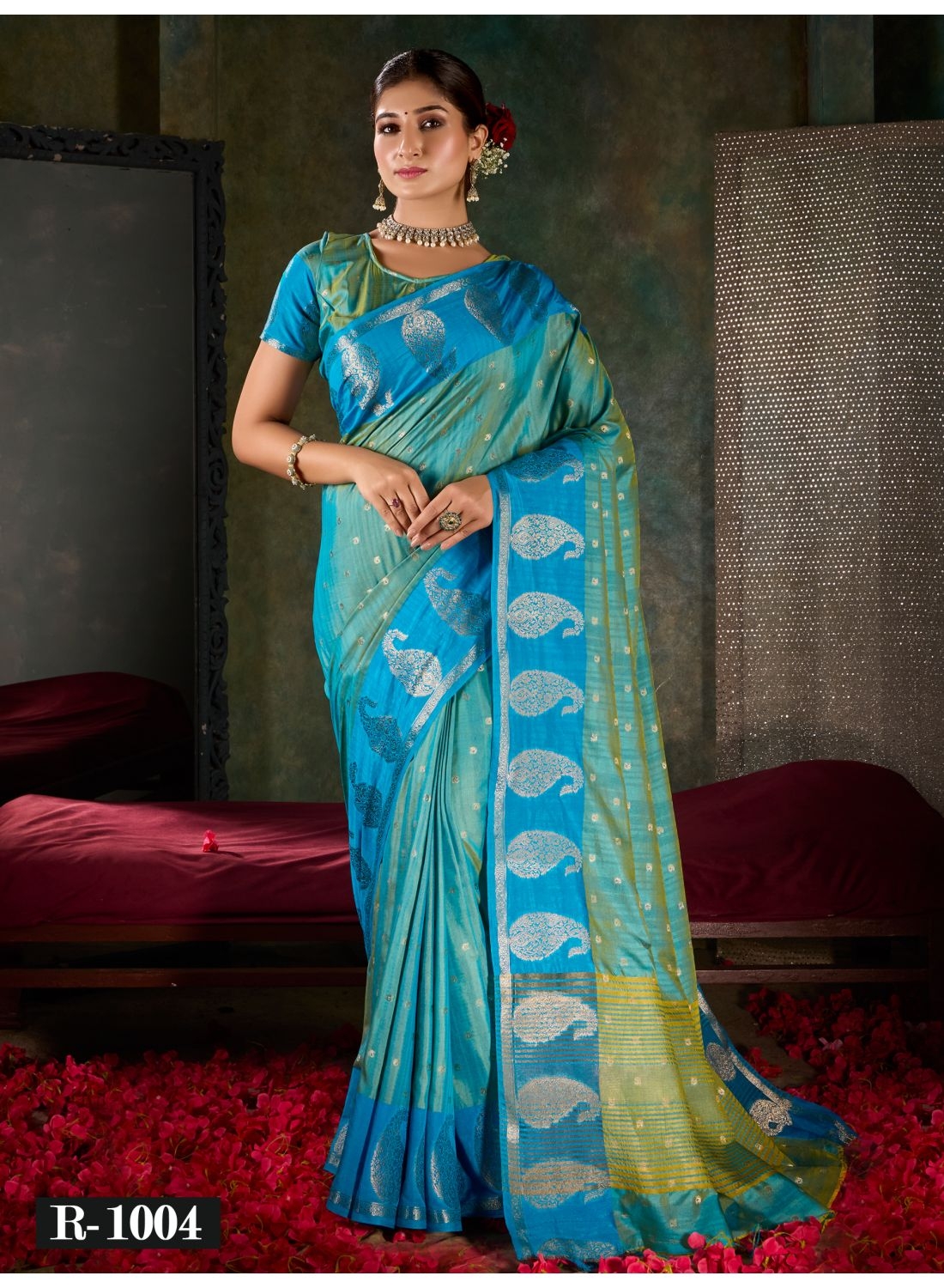 Azure Blue Banarasi Silk Saree with Paisley Zari Motifs